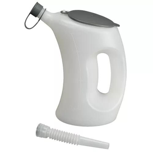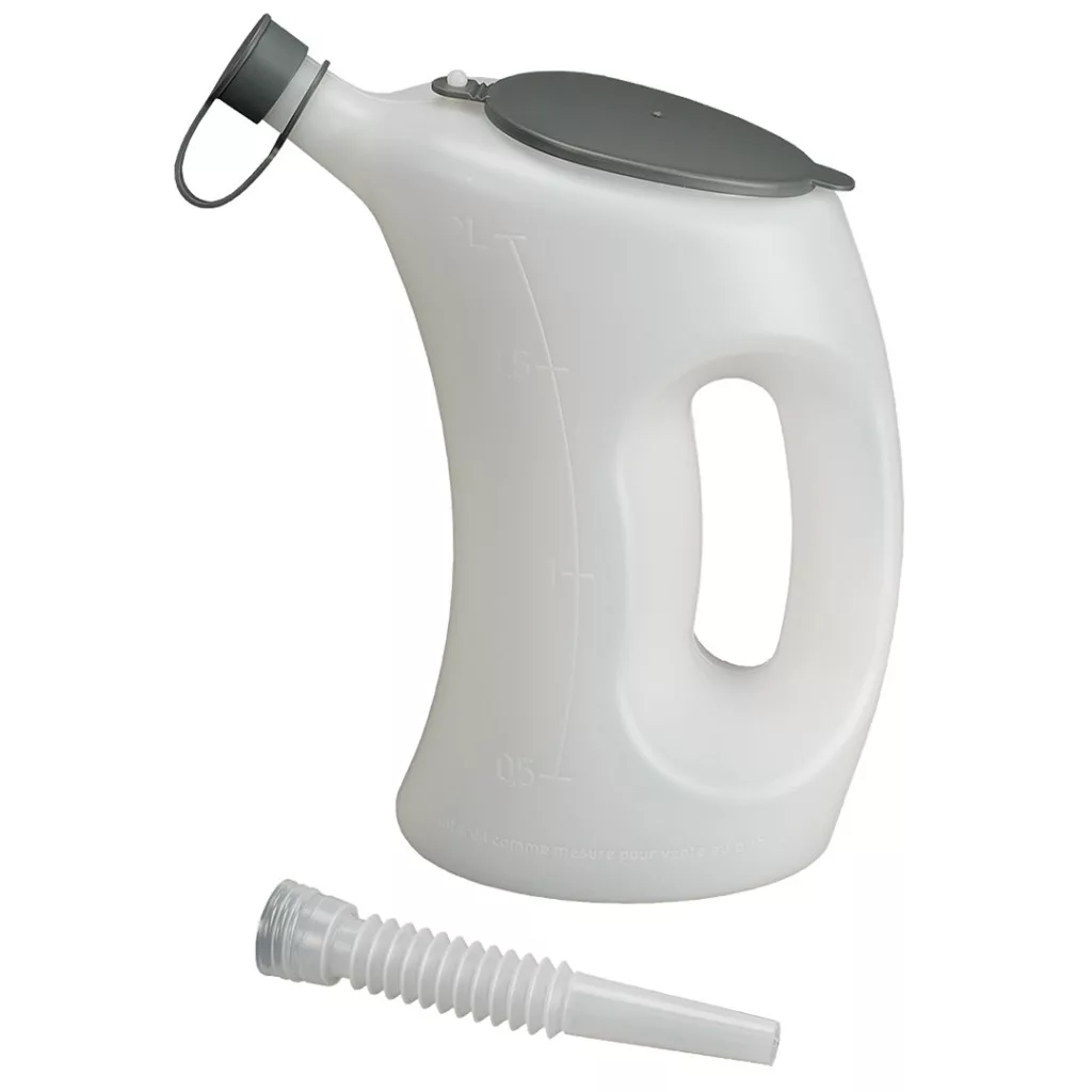 Fedeles mérőedény ,PE anyag,2 l, átlátszó (PRESSOL) védőfedéllel és védősapkával a kifolyón. Tölcsérként kivitelezett flexibilis kifolyó. Német, angol és amerikai skálázás. Élelmiszerekhez alkalmas az (EU) No. 10/2011 és az FDA § 21 CFR 177.1520 szerint. Olaj-, sav- és üzemanyagálló. Törésálló és stabilan áll.