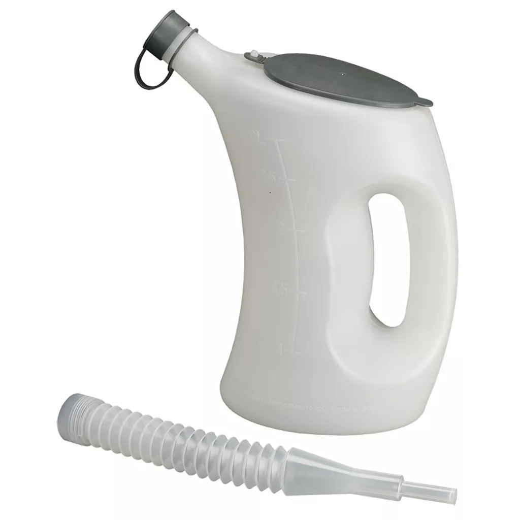 Fedeles mérőedény ,PE anyag,3 l, átlátszó (PRESSOL) védőfedéllel és védősapkával a kifolyón. Tölcsérként kivitelezett flexibilis kifolyó. Német, angol és amerikai skálázás. Élelmiszerekhez alkalmas az (EU) No. 10/2011 és az FDA § 21 CFR 177.1520 szerint. Olaj-, sav- és üzemanyagálló. Törésálló és stabilan áll.