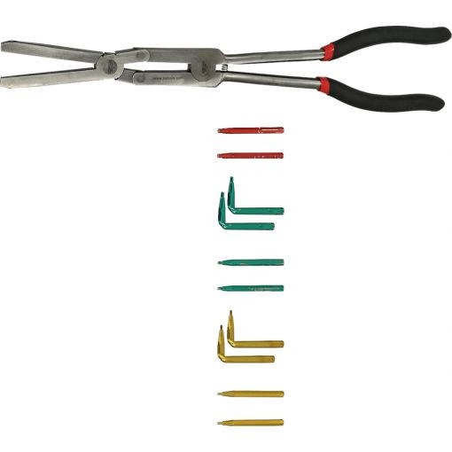 Duplacsuklós ,seegergyűrű fogó, belső biztosító gyűrűkhöz, cserélhető csúcsokkal. Nehezen elérheto helyeken is használható.