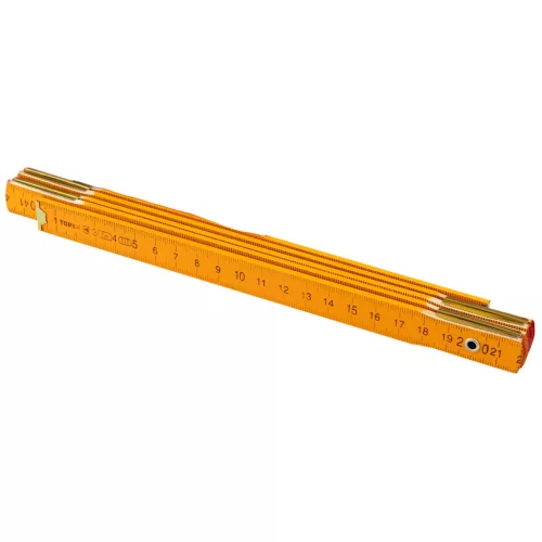 TOPEX 26C011-1 famérce 1m, rugós, sárga színű. 1 m hosszú és 16 mm széles, összecsukható. Fából készült. Az eszköz hasznosnak bizonyul otthoni használatra, valamint nélkülözhetetlen a barkácsolók felszerelésében és a szakemberek méréseinél