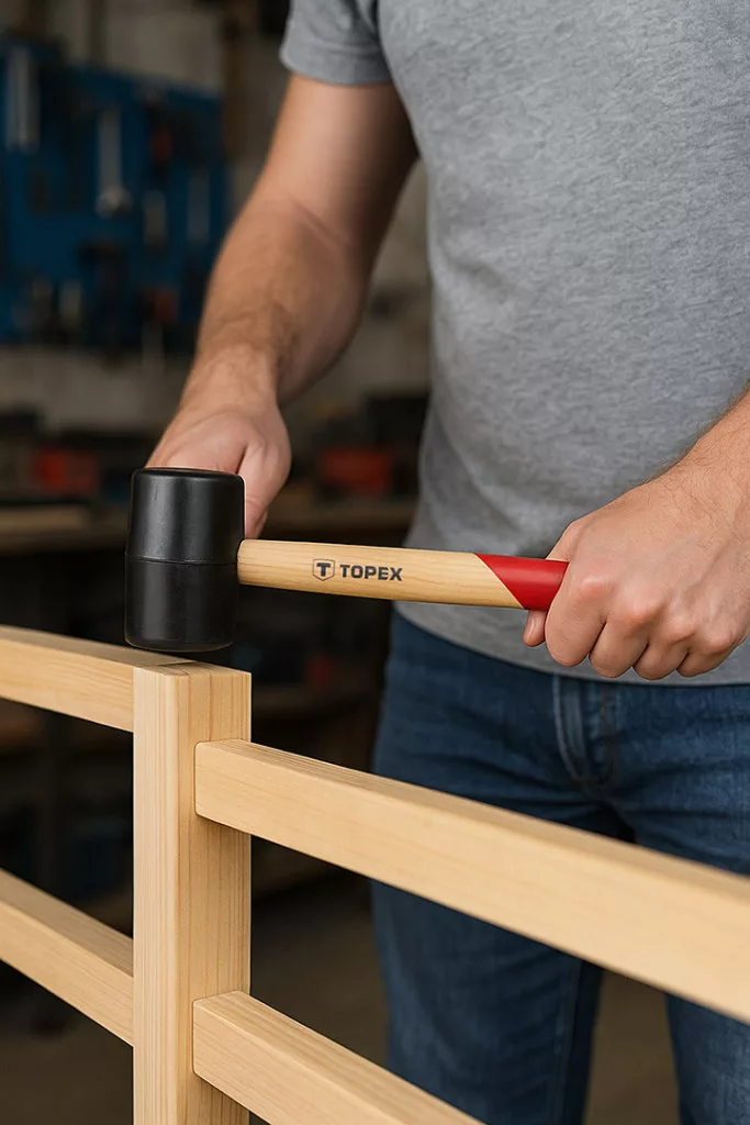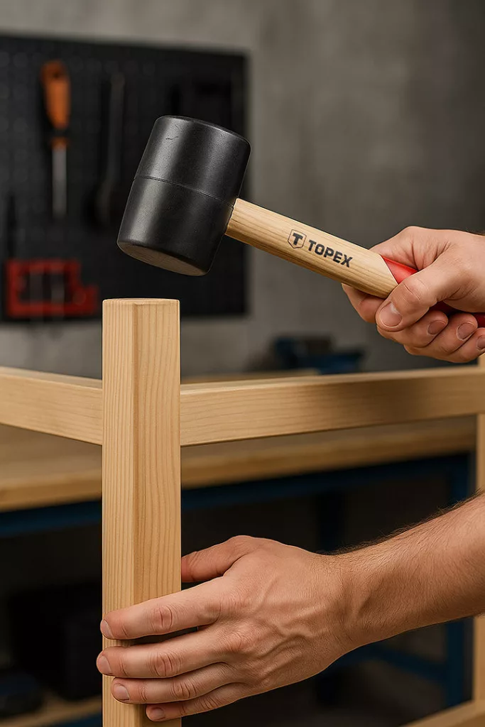 TOPEX 02A325-1 gumikalapács 60 mm/400 g-os, fa nyelű. Összeszerelési és befejező munkákhoz tervezték, ahol precíz ütésekre van szükség a felület sérülésének veszélye nélkül.