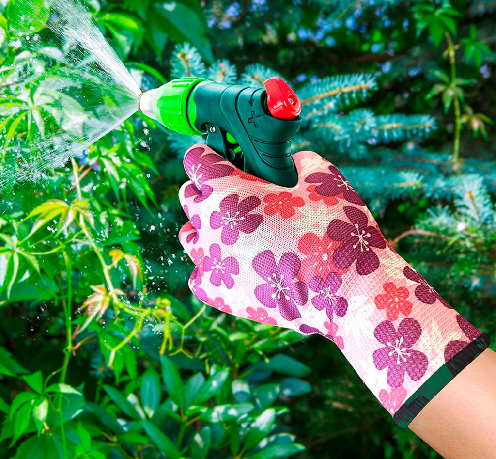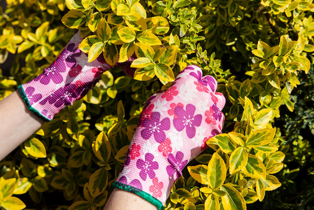 Verto kerti kesztyű divatos virágmintával. Poliészterből, légáteresztő anyagból készült. Jól illeszkedik a kézhez, és a rugalmas szegélyvég megvédi a bőrt a szennyeződésektől és a nedvességtől. Kerti és otthoni használatra ajánlott. Megfelel a CE tanúsításnak. Méretválaszték: 7",8",9"