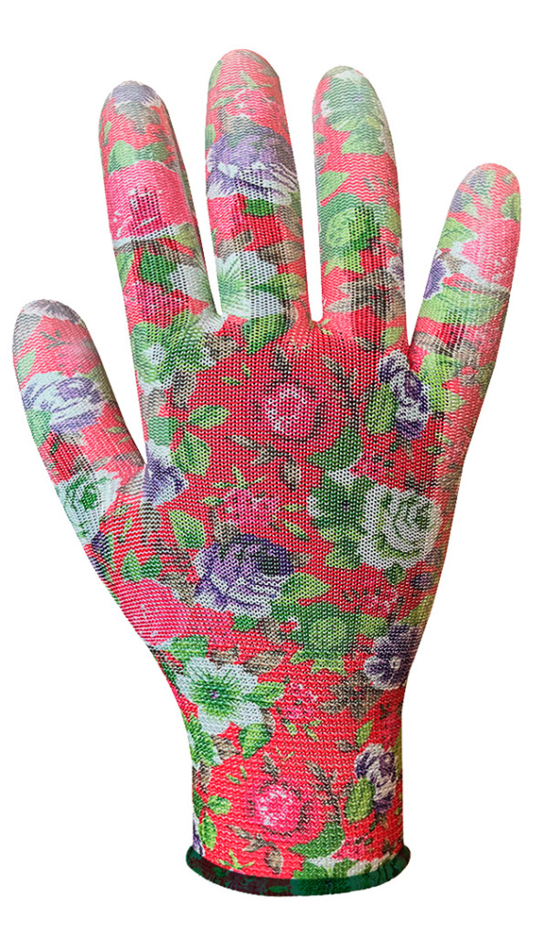 VERTO kerti kesztyű, divatos rózsa mintával. Poliészterből, PU-bevonattal, légáteresztő anyagból készült. Jól illeszkedik a kézhez, és a rugalmas szegélyű kivitel megvédi a bőrt a szennyeződésektől és a nedvességtől. A kesztyű kopásálló - 4 (0-tól 4-ig), vágásálló - 1 (0-tól 5-ig) az EN ISO 13997 X szabvány szerint, szakadásálló - 3 (0-tól 4-ig) és szúrásálló - 1 (0-tól 4-ig). A PU bevonat védi a kesztyűt a kopástól is. Otthoni-hobby használatra ajánlott. Méretválaszték: 7",8",9"