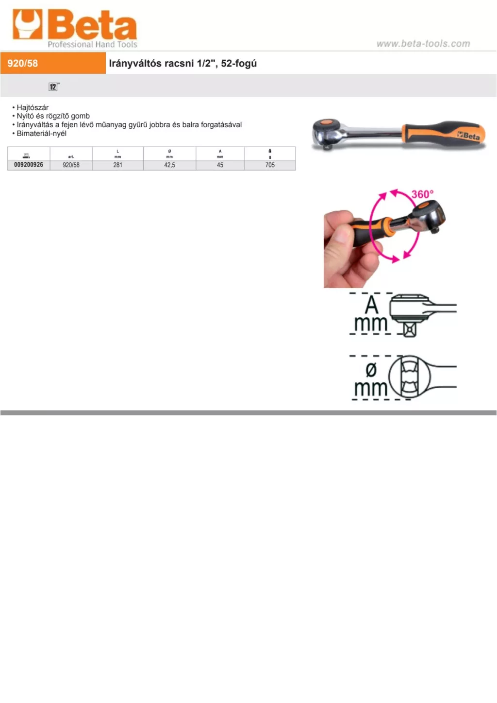 Beta 920/58 Irányváltós racsni 1/2"_x005F_x005F_x005F_x005F_x005F_x005F_x005F_x000D_, 52-fogú