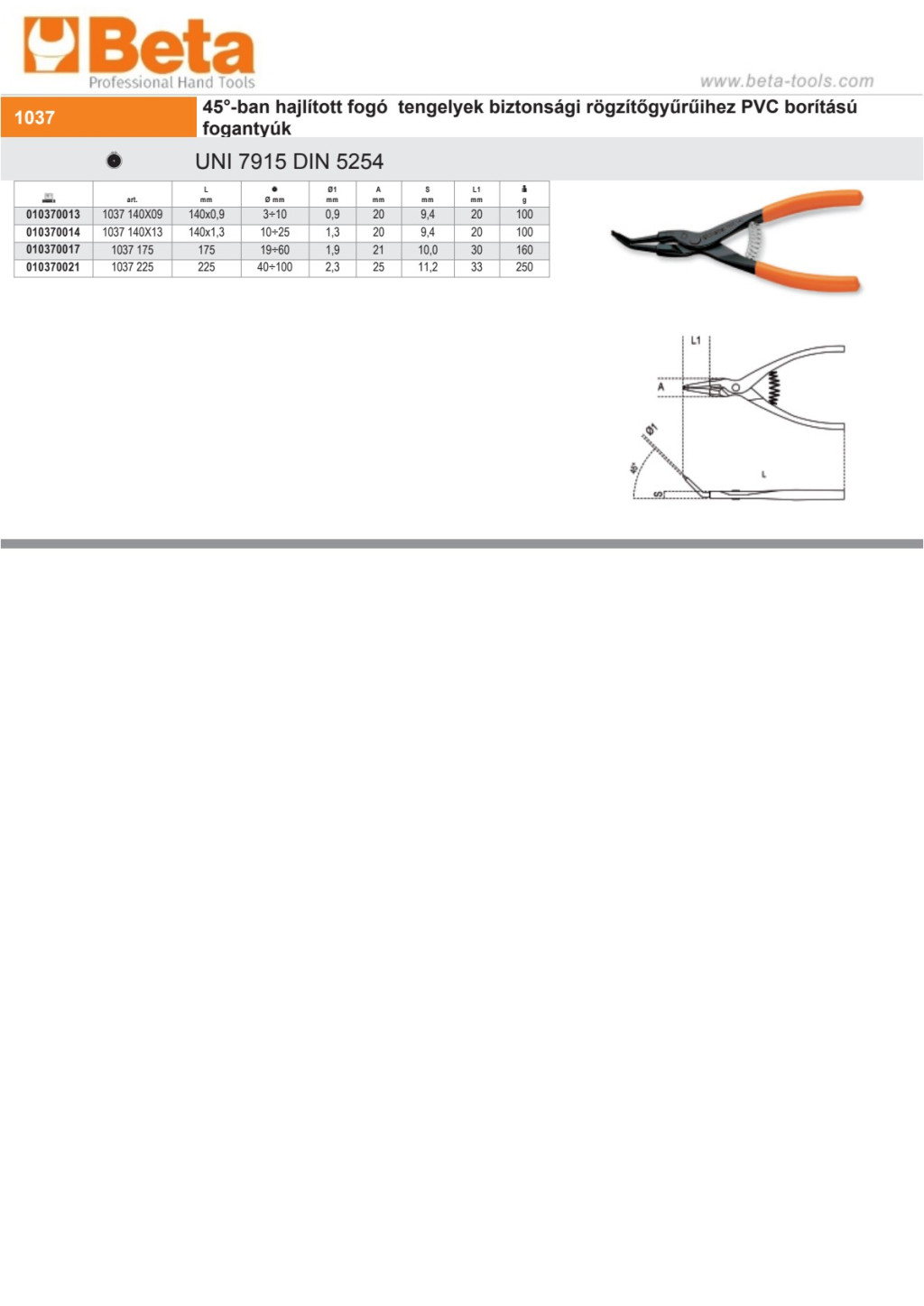 Beta 1037 175 45°-os hajlított külső Seeger-fogó, barnított, PVC-bevonattal