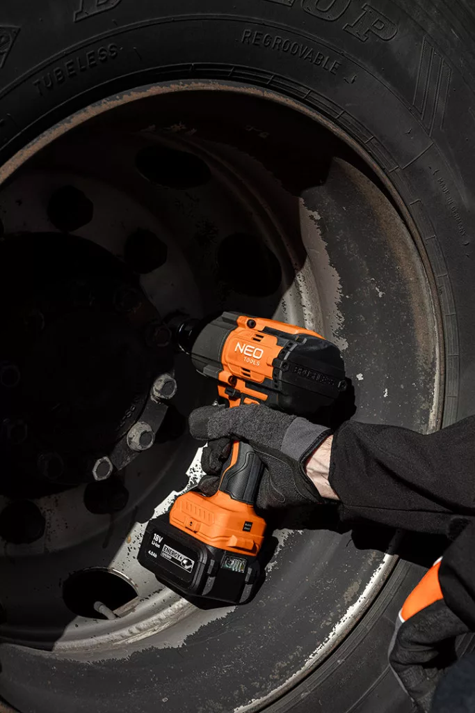 18 V-os, szénkefe nélküli, Energy+ akkumulátoros rendszerrel működő eszköz. A készülék 1/2"-os négyszög rögzítéssel és 1133 Nm maximális csavarlazító nyomatékkal rendelkezik. Az 1. fokozatban 5671 Nm-t, a 2. fokozatban pedig 680 Nm-t ér el. Képes bal oldali sebességgel is működni. Sebessége 1200 fordulat/perc (1. fokozat), 1600 fordulat/perc (2. fokozat) és 2000 fordulat/perc (3. fokozat). Az ütésgyakoriság 0-1500/2000/2500 bpm-nek felel meg. A kulcs kefe nélküli motorral van felszerelve. Az ajánlott akkumulátor kapacitása 6 Ah, és 63 perc üresjárati időt tesz lehetővé (42 perc 4 Ah-s akkumulátor esetén). A NEO márkájú szerszámot szerelőknek, autószerelőknek, tetőfedőknek, barkácsolóknak és otthoni használatra ajánljuk.