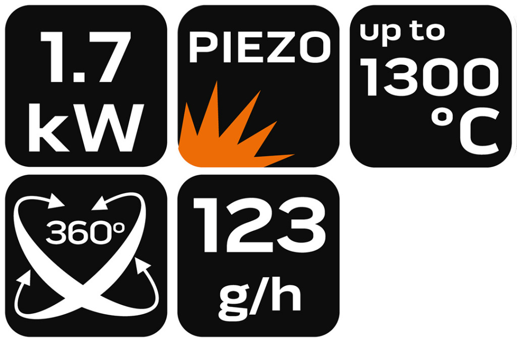 NEO 20-070 Gázforrasztó, gázégő, 190g-os palackhoz, piezó gyújtással, 360 fokos működés. Átlagos gázfogyasztása 123 g/h és a szabványos 190 g-os patronokkal való kompatibilitás jellemzi. Bármilyen helyzetben való munkavégzésének (360 fokos rendszer) köszönhetően számos feladathoz, igényes forrasztási projektekhez hasznosnak bizonyul. Az 1300°C-os maximális üzemi hőmérséklet biztosítja a hatékonyságot, míg a műanyag ház a súly és az ergonómia megfelelő arányát biztosítja.