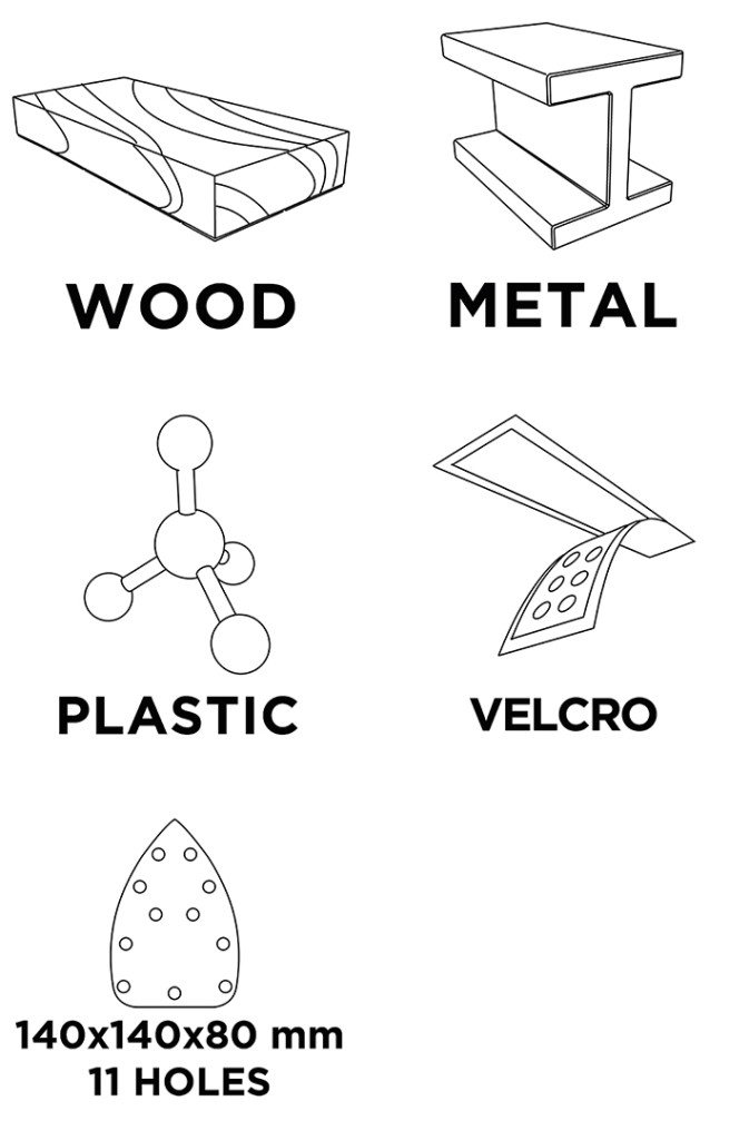 Tépőzáras csiszolópapír delta 140 x 140 x 80 mm, K 60, 5 db. 54H010 GRAPHITE 140x140x80 mm-es méretű. A 60-as szemcsenyagyságú, és delta rezgőcsiszolókhoz (pl. GRAPHITE 59G336 csiszológép) tervezték. A papír használata fához, fémhez és műanyaghoz ajánlott. A tépőzáras rögzítés megkönnyíti a hatékony és gyors cserét. A papír porelszívó lyukakkal rendelkezik, így kényelmes pormentes munkavégzést és ezáltal hatékonyabb csiszolást biztosít az anyag túlmelegedése nélkül. Az 5 darab 140x140x80 mm-es csiszolópapír-készletet szakembereknek és tapasztalt barkácsolóknak ajánljuk.