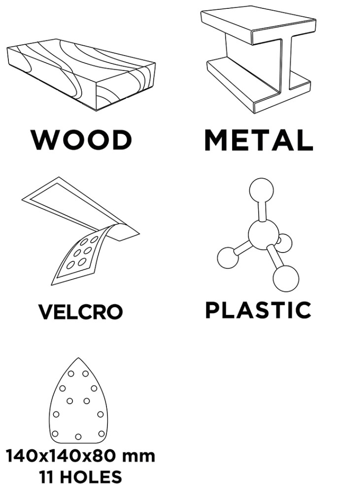 Tépőzáras csiszolópapír delta 140 x 140 x 80 mm, K 80, 5 db. 54H011 GRAPHITE 140x140x80 mm-es méretű. 80-as szemcsenagyságú, és delta rezgőcsiszolókhoz (pl. GRAPHITE 59G336 csiszológép) tervezték. A papír használata fához, fémhez és műanyaghoz ajánlott. A tépőzáras rögzítés megkönnyíti a hatékony és gyors cserét. A papír porelszívó lyukakkal rendelkezik, így kényelmes pormentes munkavégzést és ezáltal hatékonyabb csiszolást biztosít az anyag túlmelegedése nélkül. Az 5 darab 140x140x80 mm-es csiszolópapír-készletet profiknak és tapasztalt barkácsolóknak ajánljuk.