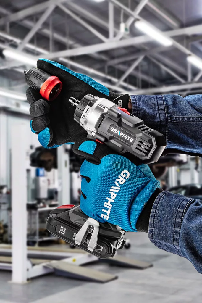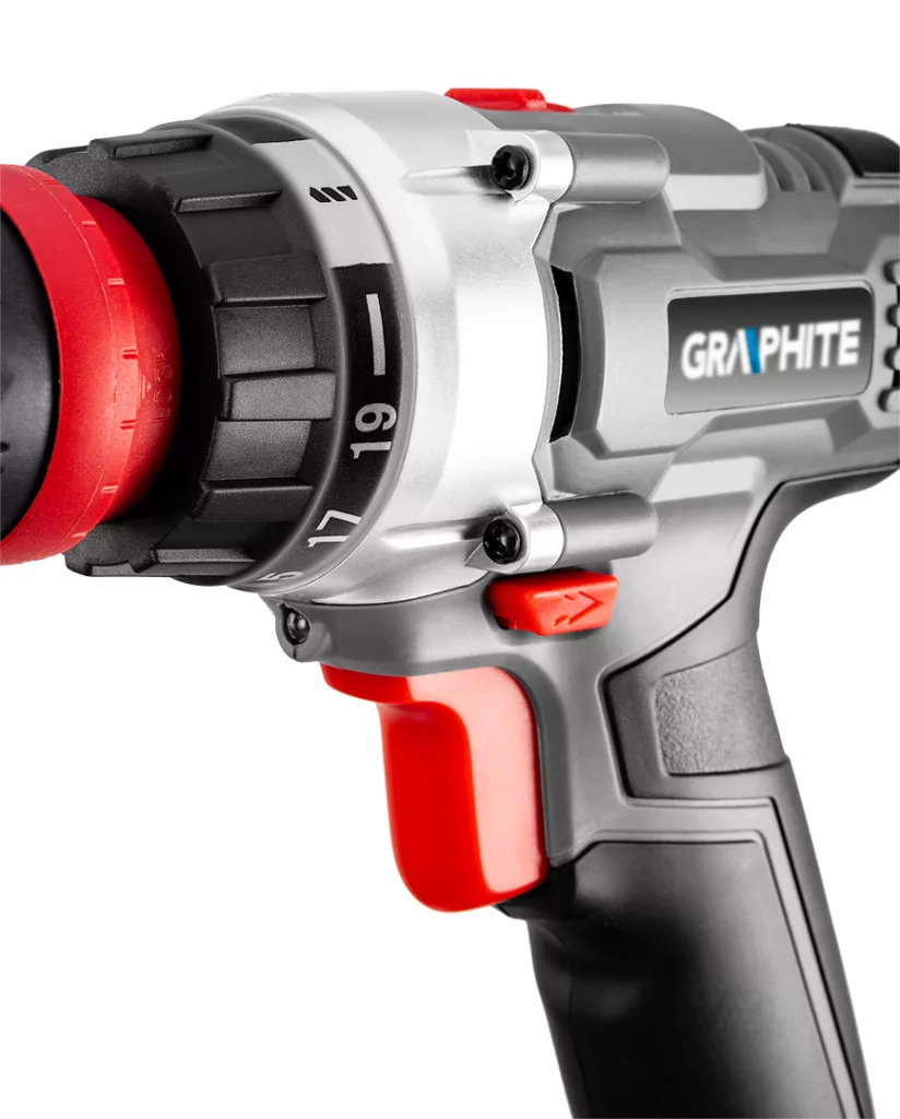 GRAPHITE akkus fúró-csavarozó, cserélhetó befogóadapterekkel, 18V Li-ion. Graphite Energy+ akkumulátorokkal kompatibilis. Egy sokoldalú eszköz otthoni és műhelymunkákhoz. A készlet levehető tokmányt és két adaptert tartalmaz (derékszög és perem) a nehezen hozzáférhető helyek könnyű eléréséhez. Az egykezes tokmány lehetővé teszi a 0,8-10 mm átmérőjű tartozékok használatát. A tokmány eltávolításának lehetősége csökkenti a szerszám hosszát, és megkönnyíti a szűk helyeken való munkát. A fúrótokmány alatt van egy 1/4"-os hatlapos szerszámbefogó. A maximális nyomaték 28 Nm (lágy csavarozás) / 44 Nm (kemény), és 19 fokozatú tengelykapcsolóval állítható, további fúrási lehetőségekkel. A maximális fúrási átmérő fában 30 mm, fémben 10 mm. Az automatikusan aktiválódó LED megvilágítja a munkaterületet.
