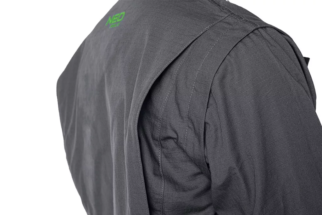 PREMIUM NEO munkadzseki 100% pamutból készült,használható szakmai és otthoni munkákhoz. Ripstop anyagból készül, amely megakadályozza a ruhadarab további szakadását. A levehető ujjaknak köszönhetően a munkadzseki mellényé alakítható. A munkadzseki álló gallérral, a hátán egyedi varrással,valamint állítható a csuklójánál a szabadabb mozgás érdekében. A munkadzseki többfunkciós, cipzáras és nyomógombos zsebekkel van ellátva,amelyek különböző szerszámok elhelyezésére alklmasak. A munkadzseki fényvisszaverő elemei a nap bármely szakában és a különböző időjárási körülmények között biztosítják a láthatóságot és a biztonságot. CE tanúsítvánnyal rendelkezik az EN ISO 13688:2013 szabvány szerint.