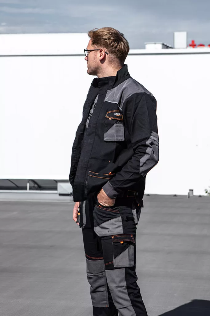 A NEO HD Slim munkadzseki. Rendkívül praktikus megoldás minden munkához, mind az otthoni mind szakmai munkához. Kiváló minőségű anyagból készült, elasztán hozzáadásával.A kopásnak leginkább kitett részeket Oxford-szövettel erősítették meg. A fényvisszaverő elemek növelik a felhasználó láthatóságát. A strapabíró zsebek ellenállnak a nagy igénybevételnek, és elfér bennük a munkához szükséges összes szerszám. A minőséget az európai tanúsítvány és az EN ISO 13688:2013 szabvány szerinti kivitelezés garantálja. XS-XXXL méretben kapható. A NEO márka megfelel a szakemberek elvárásainak.