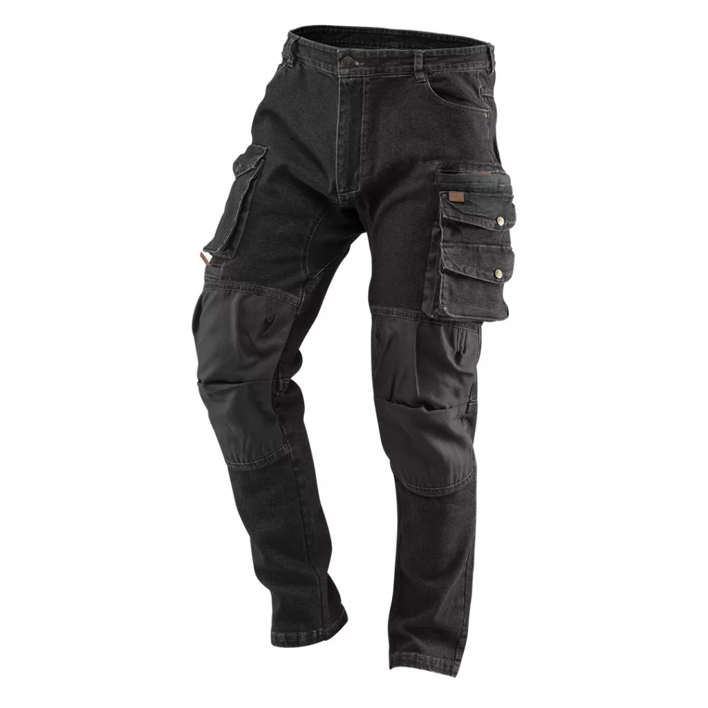 Neo Tools Farmer munkásnadrág, Denim, fekete, 98% pamut, térdvédő zseb, gombos oldalzsebek, 255 g/m2, S
