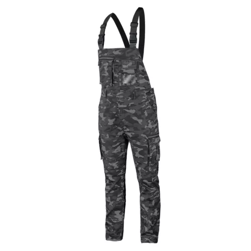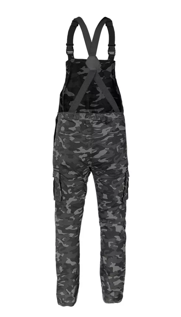 NEO Camo URBAN kantáros munkanadrág.Anyaga 60% pamut, 37% poliészter és 3% elasztán. Selyemszövetből készülnek, súlyuk 255 g/m2 . A nadrág terepmintás a szürke szín árnyalataiban. Többfunkciós zsebekkel rendelkeznek - többek között személyazonosító zsebbel és tolltartó zsebbel. Az elasztikus derékpánt és az elasztikus merevítők jobb illeszkedést tesznek lehetővé. A nadrágon egy további tépőzár is található,amelyre a saját logódat rögzítheted. Nagyszerű választás mert munkában és a munkán kívül is használható.A termék DIN 340 szabvány szerinti kivitelezése és az európai tanúsítványa minőségének garanciája. A NEO márka a professzionális igényeket is kielégíti.