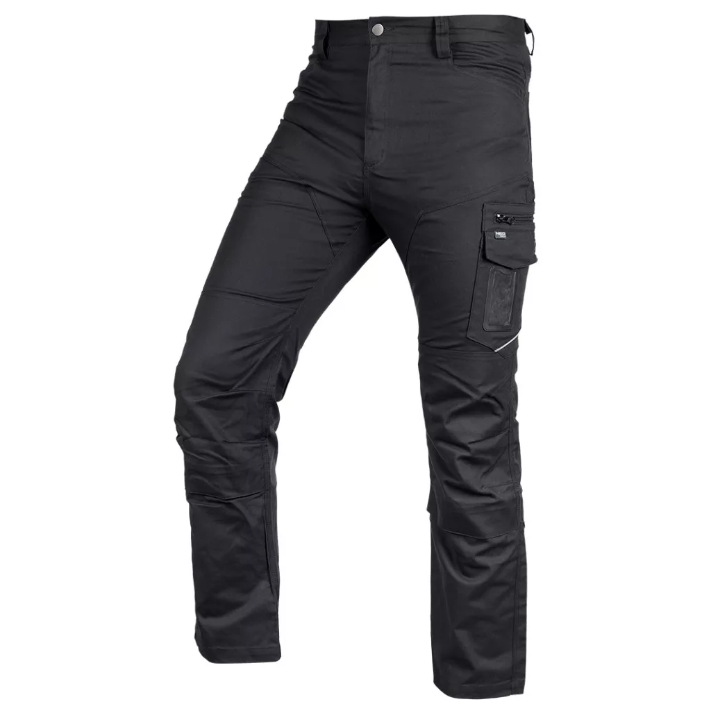 NEO Munkásnadrág Mix&Match Canvas, 280g/m2, 58% pamut,40% poliészter, 2% elasztán, külső zsebekkel, névtábla tartóval, fényvisszaverő betétekkel, fekete. Praktikus fekete szín jellemzi. A profilozott térdnek és a háromszoros varrásnak köszönhetően megfelelő tartósságot és kényelmet biztosít. A térdvédő zseb, a combon lévő, gombos rögzítésű szerszámzseb és a hevederes szerszámkapocs megfelelő tárolóhelyet biztosít. A NEO TOOLS munkanadrág az oldalzsebén található fényvisszaverő elemmel jobb láthatóságot is biztosít, valamint a munkahelyen - az azonosító jelvényhelynek vagy névtáblának köszönhetően - a ruházat jobb azonosítását. A Mix&Match nadrág az EN ISO 13688:2013 szabványnak megfelelően CE tanúsítvánnyal rendelkezik, és mind szakmai, mind szabadidős célokra jól használható.