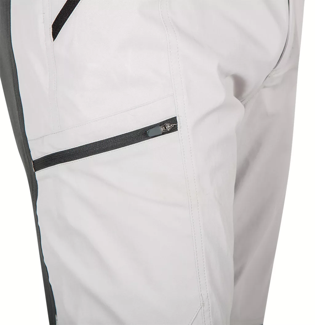 NEO Munkásnadrág, OUTDOOR, 4 irányú sztreccs anyag, 150g/m2, világos-sötét szürke. 4 way stretch anyagból készült nadrág, ,,cotton touch twill" szövéssel. Összetétele 100% poliészterből készült, gyorsan száradó, súlya 150 g/m2. A világosszürke színű NEO TOOLS nadrág a comb hátsó részén és a térdnél lévő sötétszürke betétekkel számos alkalomra praktikus választás. Elülső zsebekkel, tágas combzsebekkel és egy hátsó zsebbel a cipzáras zárólap alatt, amely tárolást biztosít a nélkülözhetetlen kiegészítőknek. Az oldalsó elasztikus derékpánt és a nyomógombokkal állítható lábszárkörfogat biztosítja a megfelelő alkalmazkodást az egyedi igényekhez. A profilozott térdek, a névtábla, a széles hurkok és a térdeken található logós címke a szakemberekkel, felhasználókkal folytatott megbeszélések és a kényelmes, többcélú munkaruházat gyártásában szerzett sokéves tapasztalat eredménye.