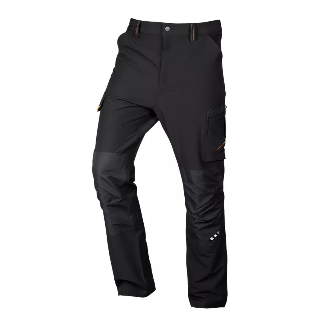 NEO 81-295-2 MUNKÁSNADRÁG, MIX&MATCH, 4 IRÁNYÚ SZTRECCS, 230G/M2, FEKETE-NARANCS. Egy nadrág a Mix&Match vonalból, amely arra ösztönzi, hogy a kiválasztott munkaruházat elemeit a saját ízlése szerint állítsa össze. A nadrág tartós 4 irányú sztreccs anyagból készült, amely 92% poliészterből és 8% spandexből áll, súlya 230 g/m2. Fekete, praktikus színű, energikus narancs elemekkel. A dupla varrás, a térdvédőknek helyet adó térdmegerősítések, a lábszár alsó részén található megerősítések és a profilozott térdek hozzájárulnak e modell kivételes tartósságához és robusztusságához. A fényvisszaverő nyomtatásnak köszönhetően ideális a sötétedés utáni munkavégzéshez. A szerszámcsipesz és a névtábla viszont növeli a komfortot, és megkönnyíti a ruházat azonosítását a professzionális környezetben. A NEO TOOLS munkanadrág megfelel a CE EN ISO 13688:2013 szabványnak.