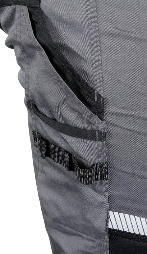 NEO Munkásnadrág Mix&Match, 240g/m2, 58% poliészter, 40% pamut, 2% elasztán külső zsebekkel, profilozott térdbetétekkel,névtábla tartóval, fényvisszaverő betétekkel,szürke- fekete. A Mix&Match sorozathoz tartozó nadrágmodell, amelyet az egyes munkaruhadarabok kényelmes kombinálására terveztek. A nadrágot 240 g/m2 súly és anyagösszetétel jellemzi: Az anyag összetétele: 58% pamut, 40% poliészter és 2% elasztán. Szilárd hármas varrással, térdvédő zsebbel és profilozott térdekkel rendelkezik, amelyek hozzájárulnak a ruhadarab tartósságához és kényelméhez. A NEO TOOLS nadrág többféle tárolási lehetőséggel rendelkezik - szerszámhorgokkal és többfunkciós zsebekkel. A térd felett található fényvisszaverő nyomtatás további megkülönböztető jegye ennek a modellnek, akárcsak a praktikus azonosító címke. A NEO TOOLS márkájú munkanadrágok az EN ISO 13688:2018 szabványnak megfelelően CE tanúsítvánnyal rendelkeznek.