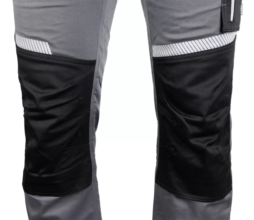 Neo Tools Munkásnadrág Mix&Match, 240g/m2, külső zsebek, profilozott térdbetét, fényvisszav. betétek, szürke-fek., M