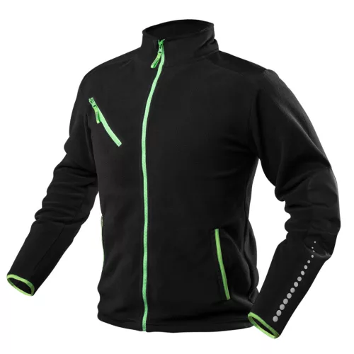 NEO TOOLS PREMIUM Munka Fleece - Stílus és Tartósság Minden Helyzetben.Ismerje meg a NEO TOOLS PREMIUM munka fleece-jét, amely a fekete színével és Cordura megerősítéseivel a legjobb választás a mindennapi munkavégzés és szabadidős tevékenységek során. Ez a prémium ruhadarab a kényelem és a tartósság jegyében készült, hogy Ön minden helyzetben kiemelkedjen.Kiváló Anyagminőség:A PREMIUM munka fleece 100% poliészterből készült, 300 g/m² súlyú, amely biztosítja a kiváló hőszigetelést és a hosszú élettartamot. A vállakon és az ujjakon található Cordura megerősítések extra védelmet és tartósságot nyújtanak, ellenállva a mindennapi igénybevételnek.Modern és Funkcionális Dizájn:Az ujjakon és a háton található fényvisszaverő nyomtatás, valamint a trendeknek megfelelő neonszínű cipzárak és ujj- és zsebszegélyek nemcsak a biztonságot növelik, hanem divatos megjelenést is biztosítanak. Ez a modern dizájn garantáltan vonzza a tekintetet.Ergonomikus Kialakítás:A NEO TOOLS munka fleece profilozott ujjakkal és bordázott mandzsettával rendelkezik, amelyek kényelmet és mozgásszabadságot biztosítanak. A három cipzáras zseb elegendő helyet kínál az apróságok tárolására, míg a belső névtábla segít a ruhadarab személyre szabásában.Biztonsági és Minőségi Tanúsítványok:Ez a ruhadarab CE tanúsítvánnyal rendelkezik és megfelel az EN ISO 13688:2013 szabványnak, ami garantálja a minőséget és a biztonságot. Legyen szó munkahelyi feladatokról vagy szabadidős tevékenységekről, a NEO TOOLS PREMIUM munka fleece minden helyzetben megállja a helyét.Válassza a NEO TOOLS PREMIUM munka fleece-t, és tapasztalja meg a minőségi munkaruházat új szintjét!