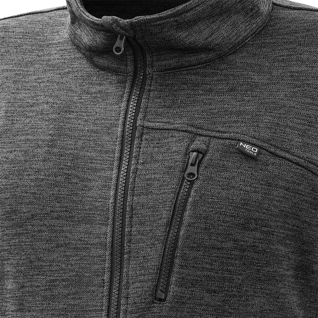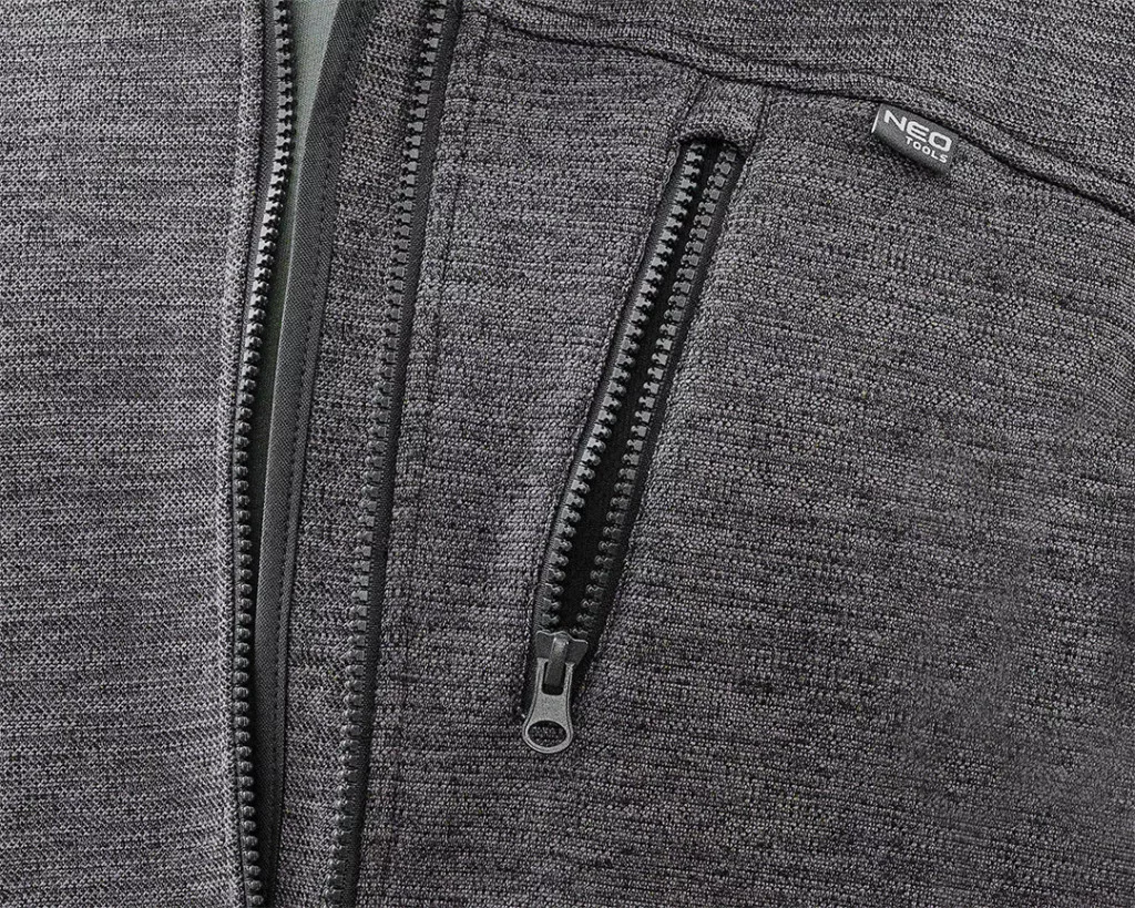 NEO 81-515 Munkavédelmi pulóver, OUTDOOR, cippzáras, szürke. Összetételét 100% poliészter és 270 g/m2 gramm tömeg jellemzi. A kötött anyag, bolyhosodás gátló kivitelű. Az átlós mellzseb és az oldalzsebek cipzárasak. Az oldalsó panelek viszont kiemelik a sziluettet és nagyobb mozgásszabadságot biztosítanak. A NEO TOOLS pulóver további védelemmel van ellátva a cipzáras elemeken. Az ujjak alja rugalmas szegéllyel van ellátva, amely megvédi a kezeket attól, hogy munka közben nem kívánt anyagok kerüljenek a ruhadarabra. A NEO TOOLS cipzáras pulóver nyakán nyomtatott logó található. Számos igényes helyzetben bizonyítani fog.