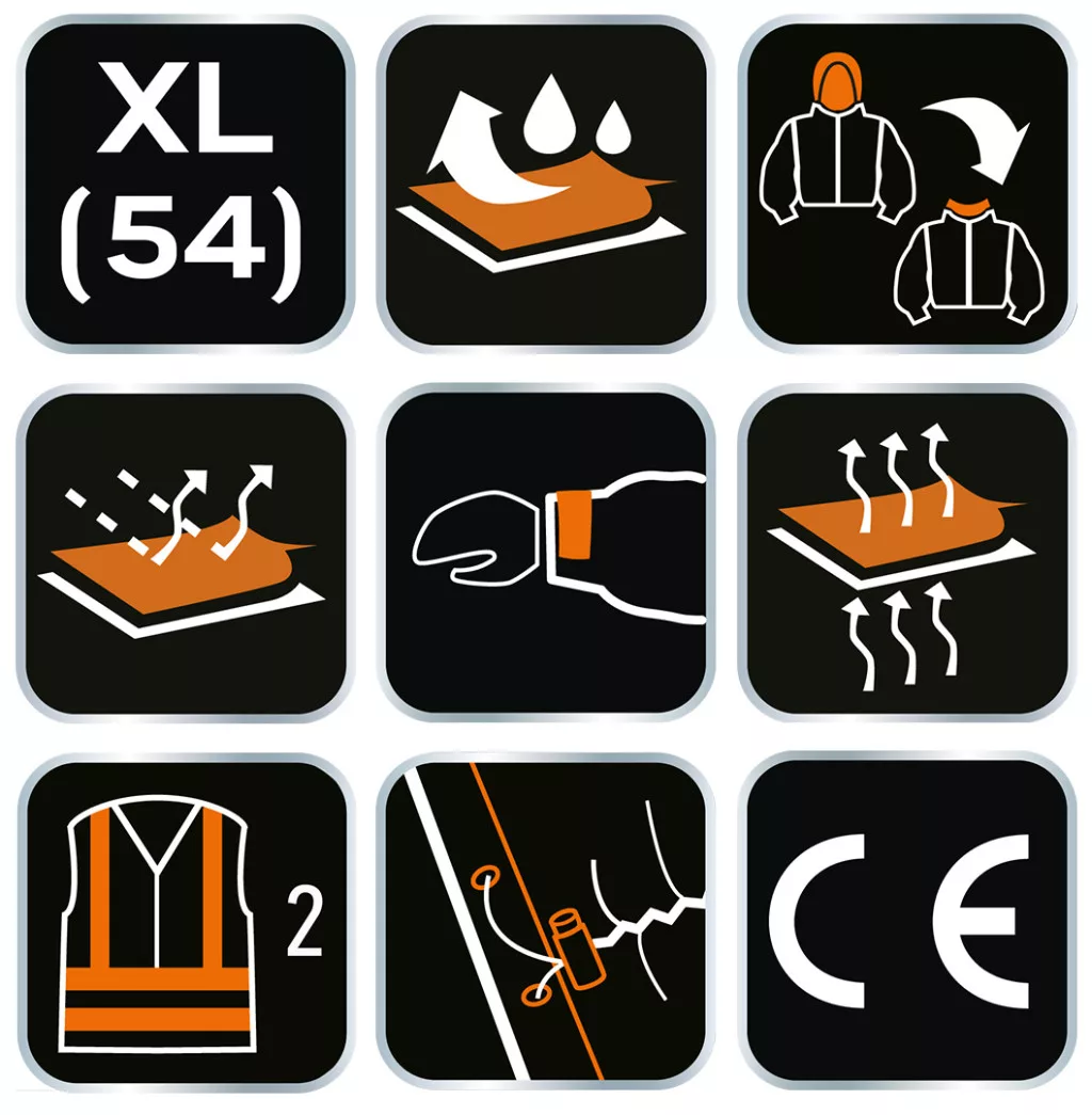 NEO Softshell láthatósági munkadzseki a viselője biztonságát növelő praktikus megoldás, legyen az nappali világítási körülmények között, vagy sötétben, a gépjárművek lámpáinak fényében. Kimagasló minőségű, vízlepergető, szélálló és légáteresztő softshell anyagból készül. Könnyű, kényelmes, emellett meleg. Ideálisan alkalmas a hideg és esős napokon való használatra. Az integrált, szabályozható rugalmas összehúzók az alsó szegélynél és a tépőzáras összehúzók az ujjak végén segítik a meleg megőrzését, maximálisan komfortossá téve a viseletét. A kabátot kiemeli a sötét anyagok alkalmazása a szennyeződéseknek leginkább kitett helyeken. Puha és meleg polárral bélelt. A kapucni legombolható. A termék EN ISO 13688:2013 szabvány szerinti kivitelezése és az európai tanúsítványa minőségének garanciája. A NEO márka a professzionális igényeket is kielégíti.