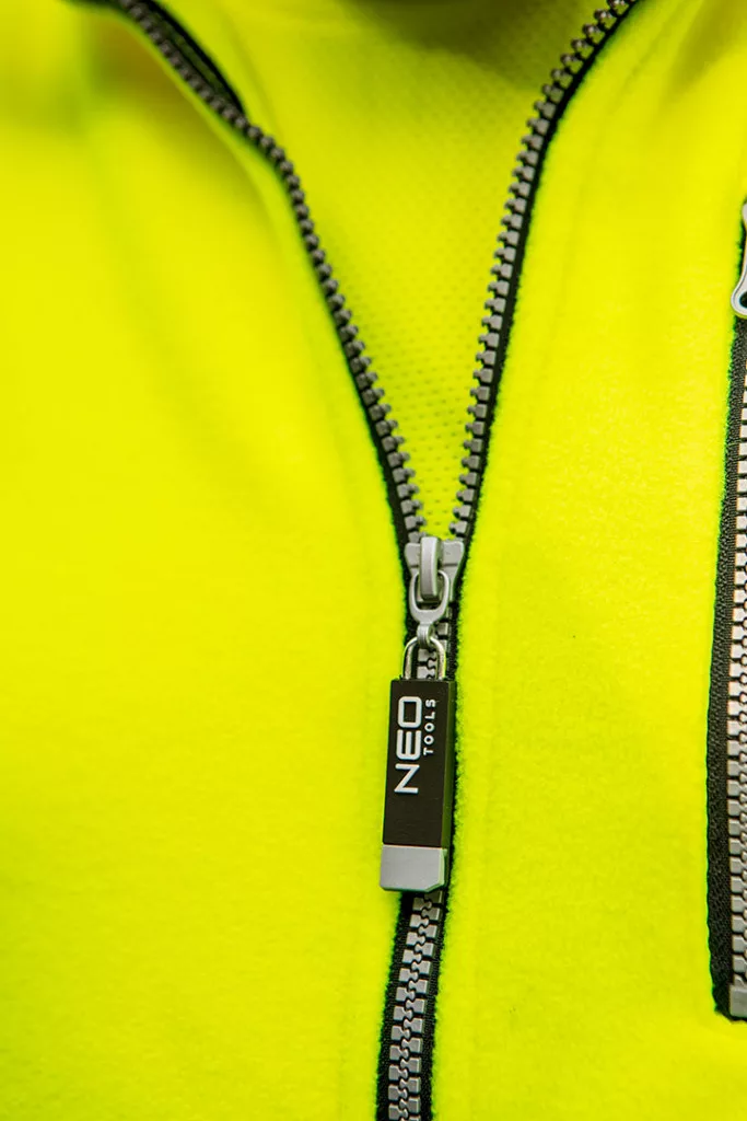 NEO láthatósági polár munkadzseki intenzív láthatóságú. A viselője biztonságát növelő praktikus megoldás, legyen szó nappali világítási körülményekről vagy sötétben, mesterséges világításnál, pl. a gépkocsik lámpáinak fényében. A 280g/m2 grammatúrájú könnyű, kényelmes és meleg polár biztosítja a használat maximális komfortját az alacsonyabb hőmérsékleteken. A dzseki3 nagyméretű cipzározható zsebbel rendelkezik. A termék EN ISO 13688:2013 szabvány szerinti kivitelezése és az európai tanúsítványa minőségének garanciája. Az európai biztonsági standardoknak való megfelelőséget a CE tanúsítvány biztosítja. A NEO márka a professzionális igényeket is kielégíti.