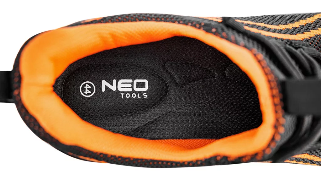 NEO 82-172 MUNKAVÉDELMI CIPŐ, S1 SR, FEKETE-NARANCS, NEO AIR, ACÉLBETÉTTEL, LÉGPÁRNÁS TALPPAL, FÉNYVISSZAVERŐ ELEMEKKEL. Acél talpbetéttel és fényvisszaverő elemekkel ellátva sokoldalúság és praktikusság jellemzi őket. Textil béléssel és felsőrésszel rendelkezik. A puha zónákkal ellátott HI-POLY habszivacs talpbetét megfelelő viselési kényelmet biztosít - akárcsak a légpárnával ellátott PU talp. A NEO TOOLS munkacipő az SR kategóriában készül, amelyet a glicerinnel bevont kerámialapra helyezett csúszásgátlás jellemez. A cipő védelmet nyújt a 200J energiájú ütésekkel szemben. Ez a NEO TOOLS sportos megjelenésű cipő, antisztatikus tulajdonságokkal rendelkezik, amely számos szakmai és mindennapi helyzetben hasznosnak bizonyul.