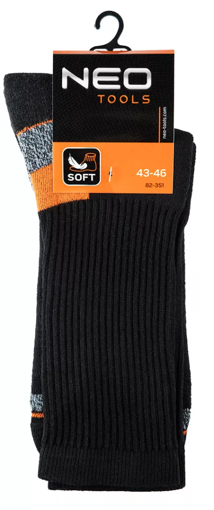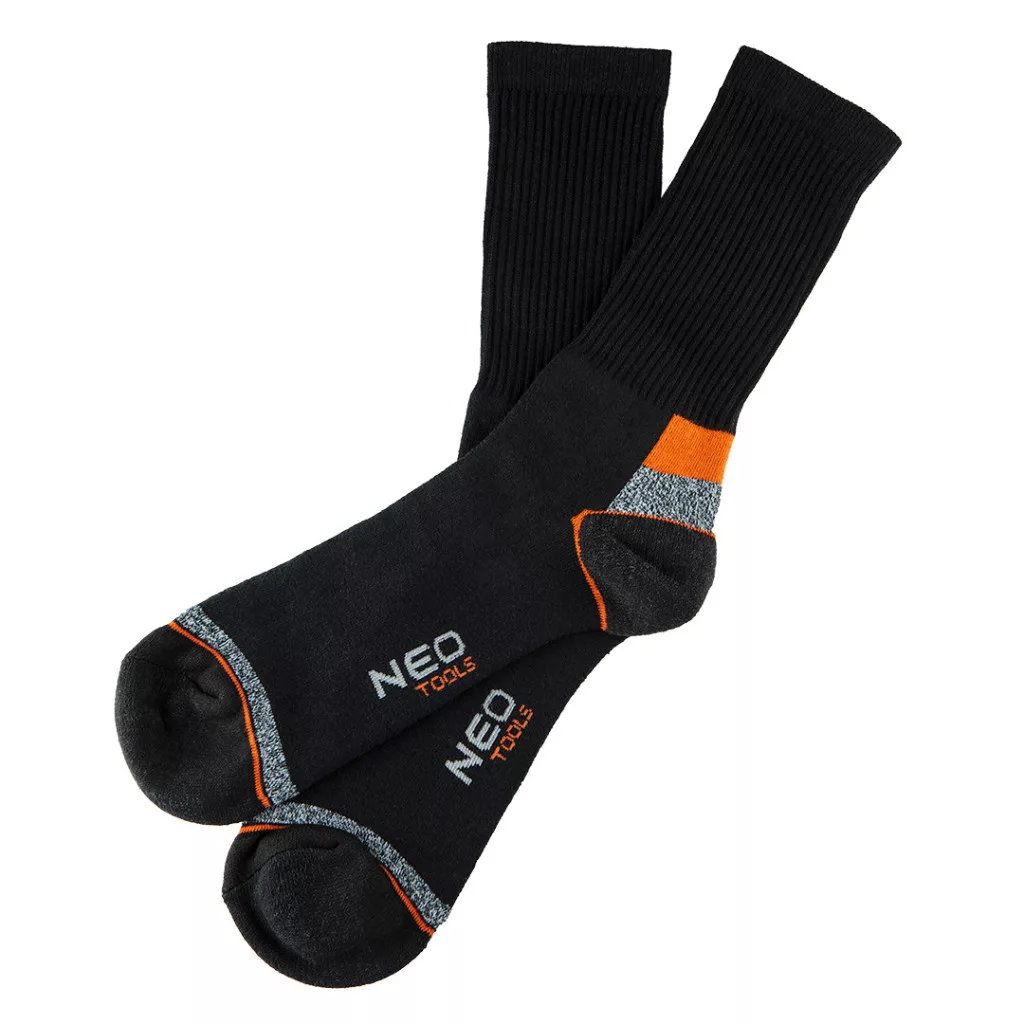 Neo Tools Munkavédelmi zokni, hosszú, 70% pamut, 30% poliészter, megerősített sarok, lélegző, 43–46