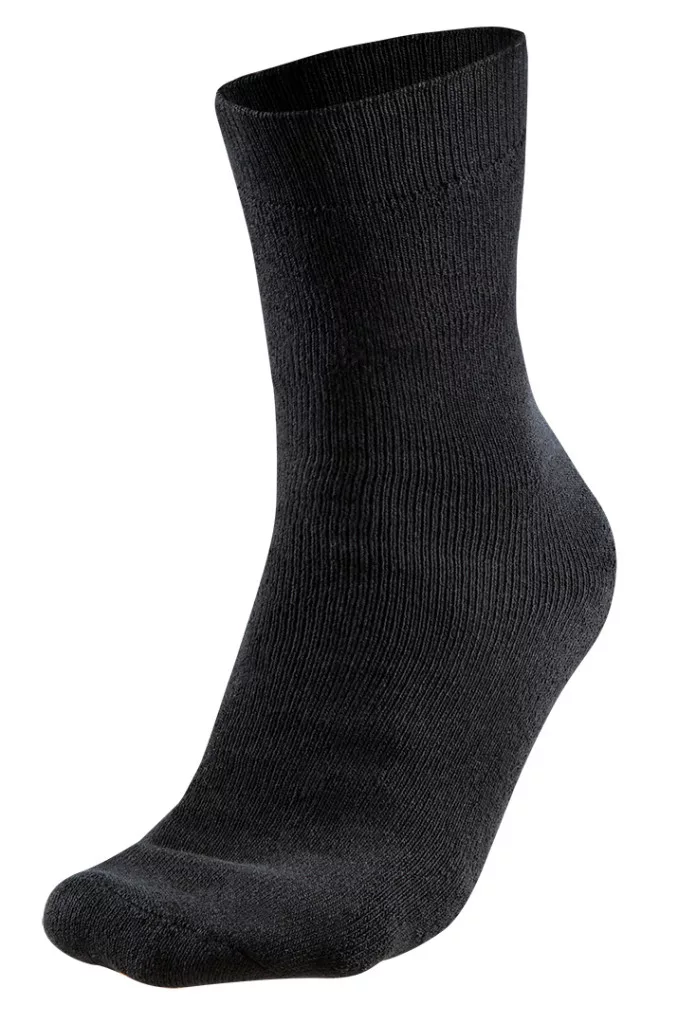 NEO zokni kiváló minőségű pamutból készül, poliészter és elasztán hozzáadásával., Kompressziós szegéllyel rendelkezik. Klasszikus fekete színben.