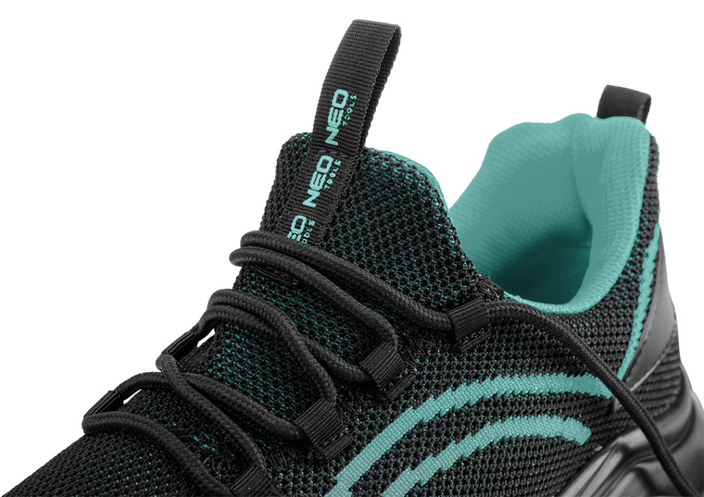 NEO 82-781 MUNKAVÉDELMI CIPŐ, O1 SR, FEKETE-KÉK, NEO AIR, LÉGPÁRNÁS ANTISZTATIKUS TALP, FÉMMENTES, CSÚSZÁSGÁTLÓ. Neo Air technológiával készült, PU talp légpárnával és HI-POLY talpbetéttel, puha zónákkal a kényelemért. A NEO TOOLS könnyű, orrmerevítő nélküli cipő egyszálas textil felsőrésszel és TPU-bélésű orrmerevítővel rendelkezik a fokozott kopásállóság érdekében. A cipő SR kategóriában készült, csúszásmentességet kínál a glicerinnel bevont kerámiacsempe padlózaton. A NEO TOOLS professzionális félcsizmákat antisztatikus tulajdonságok és a sarokrészben lévő abszorpció jellemzi. Ez egy sportos megjelenésű munkacipő, amely munkahelyi és alkalmi viselethez egyaránt jól használható.
