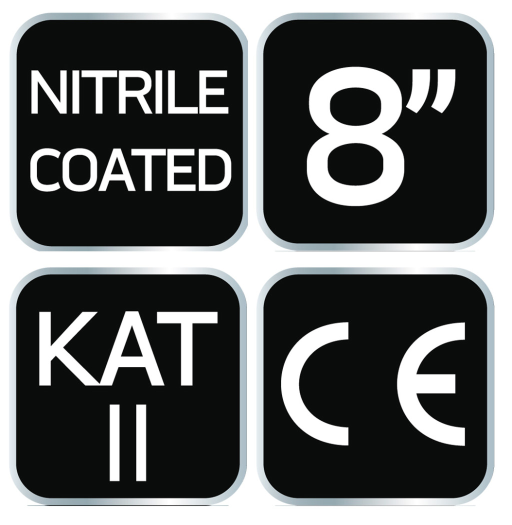 A NEO munkakesztyű védi a kezét a szennyeződésektől, karcolásoktól és a munka közbeni káros hatásoktól. Nitril bevonatú nejlonból készült. Használat közben kényelmet biztosítanak, magabiztos fogást tesznek lehetővé, még a kisebb tárgyak esetében is, ugyanakkor megakadályozzák, hogy a szerszámok kicsússzanak a kézből. A CE-jelölés biztonsági garancia arra, hogy a termék megfelel az összes uniós követelménynek. A következő méretekben kapható: 8", 9", 10".