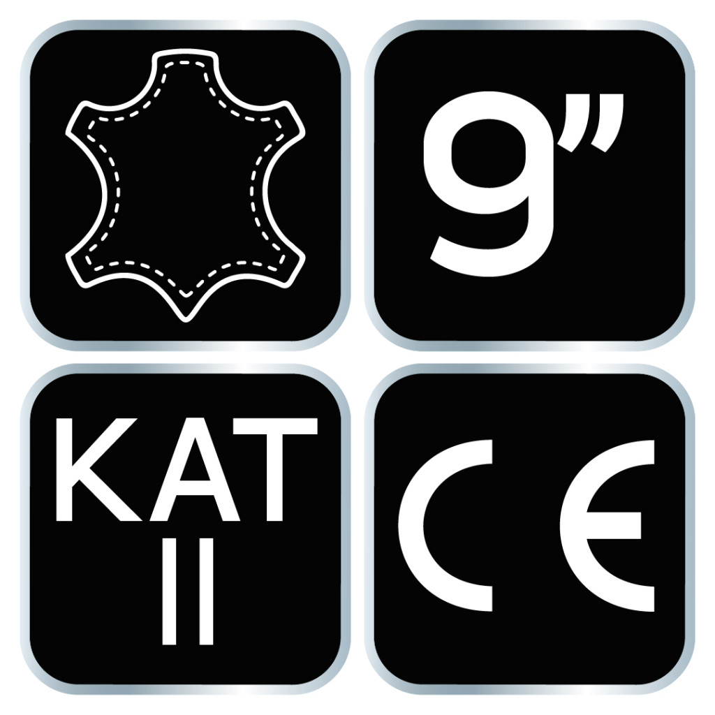 A NEO munkakesztyű védi a kezet a szennyeződések, karcolások és káros körülmények ellen. A kesztyű markolat része kecskebőrből készült, a mandzsetta rugalmas, és ezen felül tépőzárral van ellátva. A CE-jelölés biztonsági garancia arra, hogy a termék megfelel az összes uniós követelménynek. A következő méretekben kapható: 8", 9", 10",11"