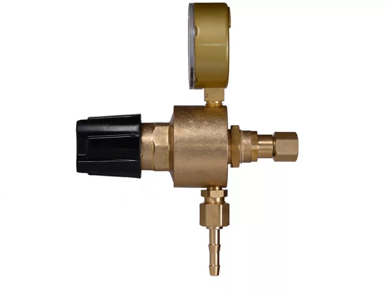 Dynaline Ar/Co2 hálózati nyomáscsökkentő, tartozék nélkül. Réz ház. Maximális bemeneti nyomás: 20 bar. Maximális kimeneti átfolyás: 22,5l/min. Kimeneti csatlakozás: G1/4".