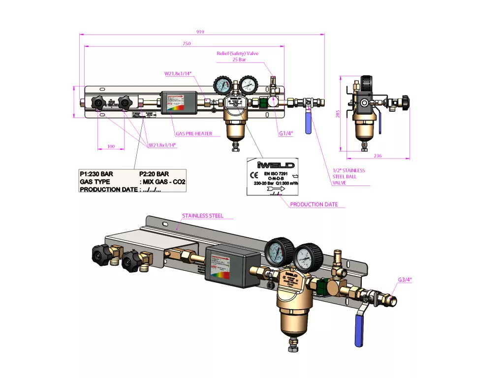 IWELD Lefejtő állomás inert gázokhoz (20bar) gázmelegítővel
