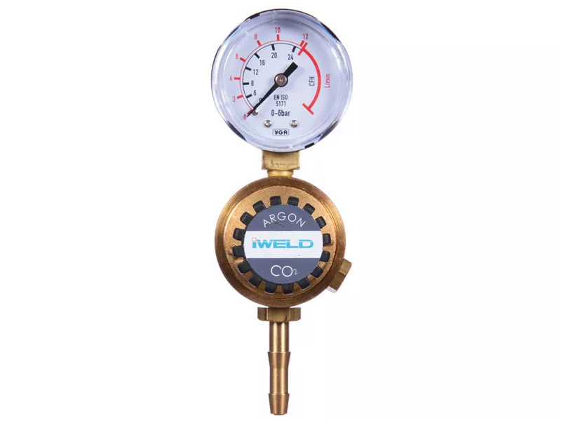 IWELD MINIREG CO2 nyomáscsökkentő, max. bemeneti nyomás: 230 bar, max. kimeneti nyomás: 22l/perc, kivitel: 1 manométer.