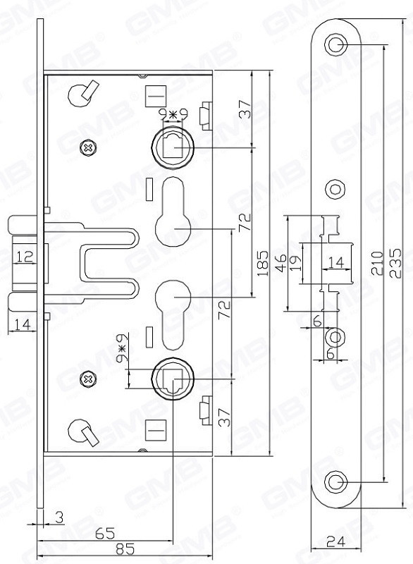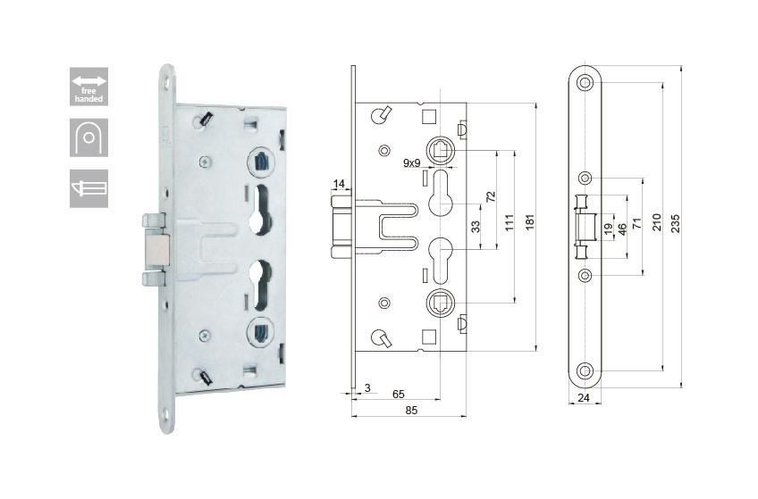 • Kilincs-kulcsközép távolság: 72mm