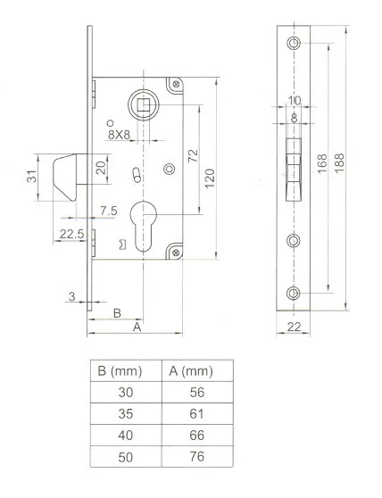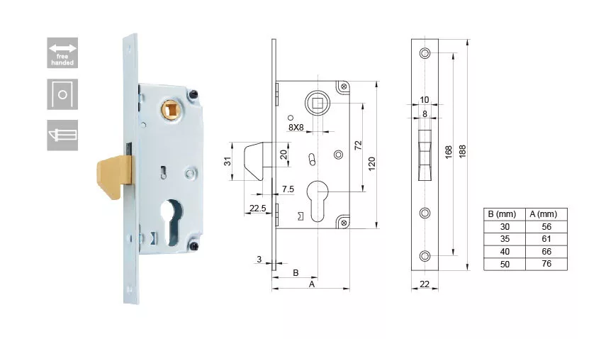 Anbo tolóajtózár cilinderes 30mm kampós 72mm váltós s001