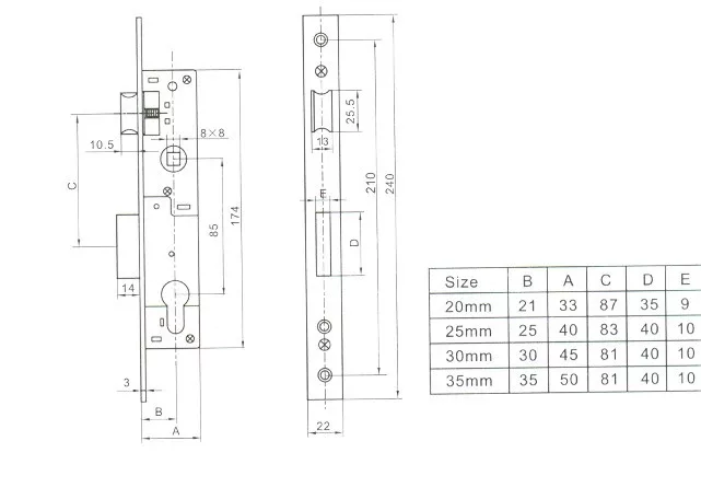 • Kilincs-kulcsközép távolság: 85mm